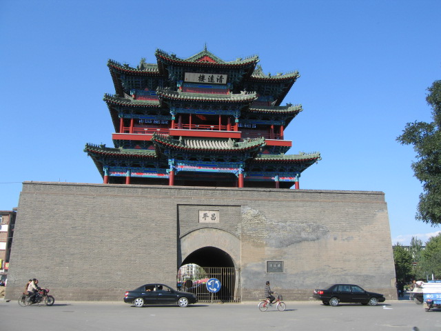 圖片說明:清遠樓又名鐘樓,位于古城宣化正中。始建于明成化十八年(1482年), 是一座重搪多角十字脊歇山頂?shù)母叽蠼ㄖ。與城內鎮(zhèn)朔樓、拱極樓成一軸線。券洞內500 年前的鐵輪車轍明顯可見。樓內懸有明嘉靖十八年公元年鑄造的宣府鎮(zhèn)城鐘一口,高5米,口徑7米,重約萬斤,用四根通天柱架于樓體上層中央。鐘聲悠揚宏亮,可傳40余里,頗負盛名。該樓造型別致,結構精巧嚴謹。可與武漢黃鶴樓媲美,在國內同屬罕見,素有“第二黃鶴樓” 之稱。
